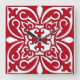 Moroccan inspired tile pattern with a polished, ceramic look - dark Chinese red with a white background
