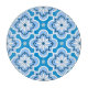 Mixed media digital rendition of a classic Moroccan tile pattern - Light sky blue blue, cobalt blue, and white on a cerulean blue background