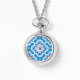 Mixed media digital rendition of a classic Moroccan tile pattern - Light sky blue blue, cobalt blue, and white on a cerulean blue background