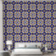 Moroccan Tile Pattern Blue Yellow Shaped Bohemian Wallpaper