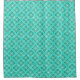 Mixed media digital rendition of a classic Moroccan tile pattern shower curtain - Aqua and deep teal, accented with white, on a turquoise / peacock background