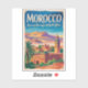 Morocco retro vector travel design. Morocco is a vibrant North African country known for its colorful medinas, sweeping desert landscapes, and rich cultural traditions. From the bustling markets of Marrakech to the vast Sahara and scenic Atlas Mountains, it offers a diverse and immersive travel experience.