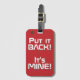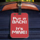 Morocco National Flag Funny Patriotic Luggage Tag with the Morocco national flag colours covering front side of the tag. Funny text "Put it BACK! It's MINE" is written over the flag colours. Text is fully customizable using "Customize it!" feature. Other side of the tag is reserved for your information. This super fun Morocco Luggage Tag is the perfect companion for your travel bag and the lovely gift for any occasion. © CountriesOfTheWorld