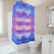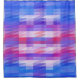 This shower curtain features a vibrant design comprising an arrangement of pastel colours in a mosaic-geometric pattern, overlaid with delicate, violet-hued square lines.