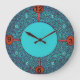 Mosaic Design Green Aqua Red/Brown Kitchen Clock