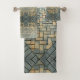 Les briques grises et moutarde créent les motifs sur ces serviettes de coordination avec un attrait urbain industriel. Elles font partie d'une collection de conceptions de salle de bain coordonnées. Cette image est une photo originale de JLW_Photography