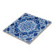 Ceramic tile in an eight pointed, mosaic, star pattern in dark indigo and cobalt blue, accented with white
