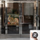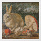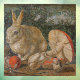An antique, vintage mosaic of a rabbit with mushrooms. A beautiful woodland animal and plant image.