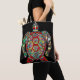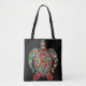 Mosaic sea turtle in jewel tone colours of red, green, blue and gold on a black tote. I offer the matching flipflops.