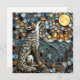 Ai art depicted a wolf howling at the moon. Cool tile mosaic style. Black note card.