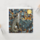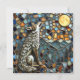 Mosaic Tile Wolf Howling at the Moon Card