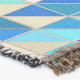 Triangular mosaic tiles in shades of cobalt blue, soft aqua, beige and cream