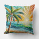 Mosaic Tropical Beach Sunset Palm Throw Pillow