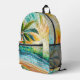 Mosaic Tropical Beach Sunset Palm Tree Printed Backpack