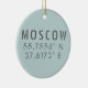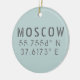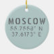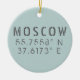 Moscow, Russia longitude and latitude coordinates in distressed fonts give this keepsake a modern urban look