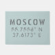 Moscow, Russia longitude and latitude coordinates in distressed fonts give this a modern urban look