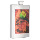 The product is a good size and came exactly as it was pictured. The lid is not attached to the flask, which could be dangerous on drunken nights... The print came out surprisingly well and looks very sharp. Would definitely recommend.