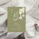 Moss Green Champagne Glasses Bridal Brunch & bubbly Invitation. Rounded.
