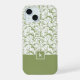 Moss Green Damask Pattern Monogram iPhone 15 Case
