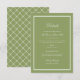 Moss green wedding details card for a refined estate wedding, designed in a traditional formal and old money aesthetic with elegant calligraphy and a structured layout. Perfect for the timeless bride hosting a classic southern or country club wedding, featuring rich olive green tones and understated luxury. Style with letterpress paper, silk ribbon, or envelope liners for a cohesive, heirloom stationery suite.