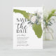 Moss green Florida destination wedding save the date with a floral US state illustration.