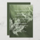 This fall family reunion invitation card has a dark moss green colour theme featuring subtle monochromatic maple leaves accenting a flowing light to dark earthy green gradient - by katz_d_zynes