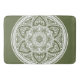This white mandala sits on a dark moss or olive green background. The colours are harmonious and balanced. Part of the Bardh Mandala Collection.