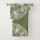 This white mandala sits on a dark moss or olive green background. The colours are harmonious and balanced. Part of the Howlsplann Mandala Collection.