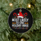 Most Likely Give Holiday Hugs Christmas Matching Ceramic Ornament