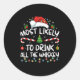 Most Likely To Drink All The Whiskey Santa Christm Classic Round Sticker