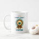 If you can't get your day going without a cup of joe, you might be voted most likely to need coffee. It's a most appropriate award for some of us! Done in shades of teal, brown and yellow, this badge of honour has a steaming mug at the centre surrounded by modern text. Matching products available.