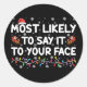 Most Likely To Say It To Your Face Funny Christmas Classic Round Sticker
