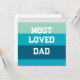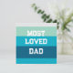 A pretty grey, blue, and purple stripes design and a short three-word template in two lines, saying most loved dad. Click personalize to change the text to other short words, or buy it as is.