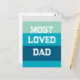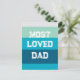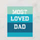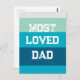 A pretty grey, blue, and purple stripes design and a short three-word template in two lines, saying most loved dad. Click personalize to change the text to other short words, or buy it as is.