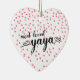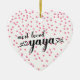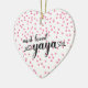 Most loved Yaya heart shaped christmas ornament with a field of tine pink hearts background. Visit our shop to view this ornament in a large assortment of grandmother names.