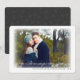 A modern Christmas missive sends casual contemporary greetings that reminds "it's the most wonderful time of the year" to family and friends in this lovely photo card. Large size photo on the front is softly framed by a blurred edge for a soft focus effect with tiny flecks of snow around each edge, while the back features a coordinating snowflake pattern set against a charcoal grey background. Stylish cursive typography creates a clean, simple and elegant keepsake.