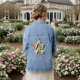 Cette veste en denim a un design moderne du milieu du siècle, en forme d'étoile, d'une grille avec des carrés colorés et des rectangles. Il a également des cercles colorés placés sur les lignes de grille. Si vous aimez le design mais préférez différentes couleurs, envoyez-moi un message.