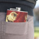 Flask featuring Henriëtte Ronner-Knip’s oil painting Making Music (1900). A mother cat looks on as her two kittens play with a guitar while one other kitten claws up a red curtain, and another kitten hides behind books. A wonderful gift for cat lovers and Romanticism enthusiasts.