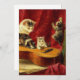Card featuring Henriëtte Ronner-Knip’s oil painting Making Music (1900). A mother cat looks on as her two kittens play with a guitar while one other kitten claws up a red curtain, and another kitten hides behind books. A wonderful gift for cat lovers and Romanticism enthusiasts.