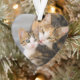 Mother cat fondly grooms and licks her young kitten tenderly, both faces side by side. Mutual grooming shows the friendly relationship between cats. This heart acrylic xmas ornament is a gift idea for cat lovers. This cute and lovely kitty picture was photographed by Katho Menden http://www.zazzle.com/kathom_photo