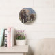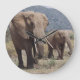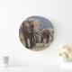 Mother elephant walking with elephant calf large clock