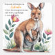 A mother kangaroo stands upright in a natural setting, with her baby joey peeking out from her pouch. The baby kangaroo is small and curious, its head just visible, while the mother appears protective and calm. Surrounded by greenery, they embody the close bond between mother and child in the animal kingdom. The scene feels peaceful and nurturing, capturing a moment of connection in the wild.