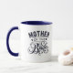 Mother of Bride coffee Mug is shown in white with navy blue accents.