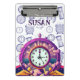 Mother of Clock Spiral Photo Notebook Mini Clipboard- a collection of clocks in a background
