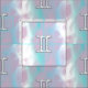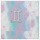 A mother of pearl like Gemini zodiac symbol applique on a soft pink and blue background. A modern fresh girly style design for a great custom birthday gift idea for her.