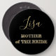 Mother of The Bride Black and Gold Glitter Typography Elegant Button, you can add your name