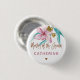 Glam elegant chic watercolor floral custom bridal shower button with copper glitter brushed handwritten like typography script, pink magnolia petals, green mint eucalyptus leaves, and a small heart. +++++++++ Easy to personalize with mother of the groom's name. ++++++++++ Suitable for spring summer trendy modern glamourous wedding bridal parties.