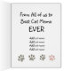 Our cats love us but have somewhat different ideas about what makes a fine gift. As the Mom to 6 cats, I have received cat treasures-dead and alive, all well intentioned, I’m sure. Personalize this for the cat mom in your life with her cat nickname and the names of each cat for a truly memorable gift she won’t need to clean up after.
