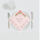 Napkins made of pink paper with a vintage rose design and the words "Mother's Day Brunch 2023" printed on them. Elegant and subtle painting. You are able to make changes to the text.