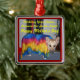 Mother's Day Modelling Clothes Metal Ornament. This German Shepherd (Buddy) is modelling a colourful shawl from Hawaii. Buddy is such a good sport. He models scarves, hats, t-shirts, jackets, and other items. The slogan for modelling mother's clothes and the Mother's Day greeting, plus the photo all can be customized.